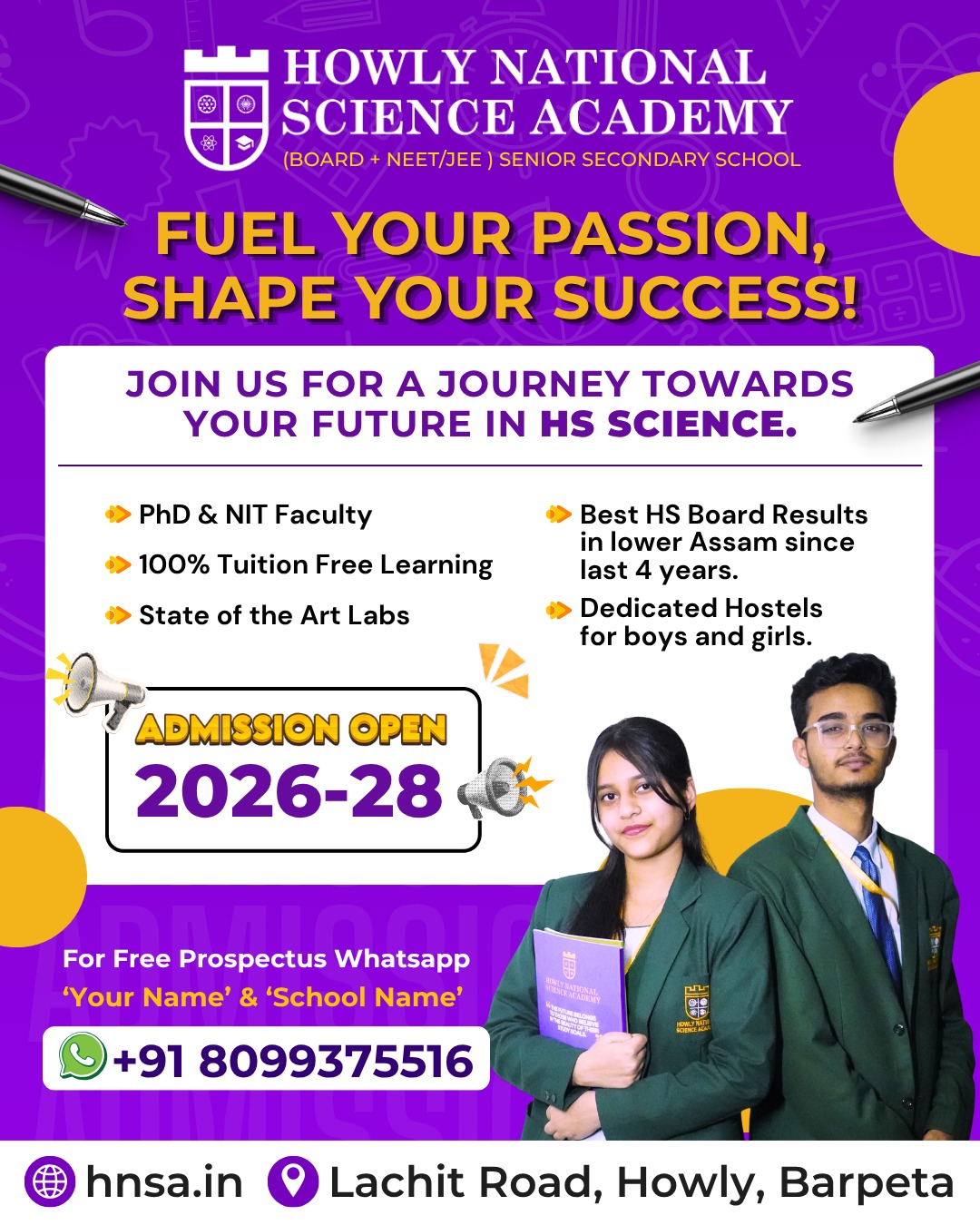 Welcome to Howly National Science Academy, a premier institute for higher secondary education in lower Assam. Our fully residential separate hostel facilities for boys and girls, exceptional faculty, and state-of-the-art infrastructure make us the first high-quality science academy in the region.